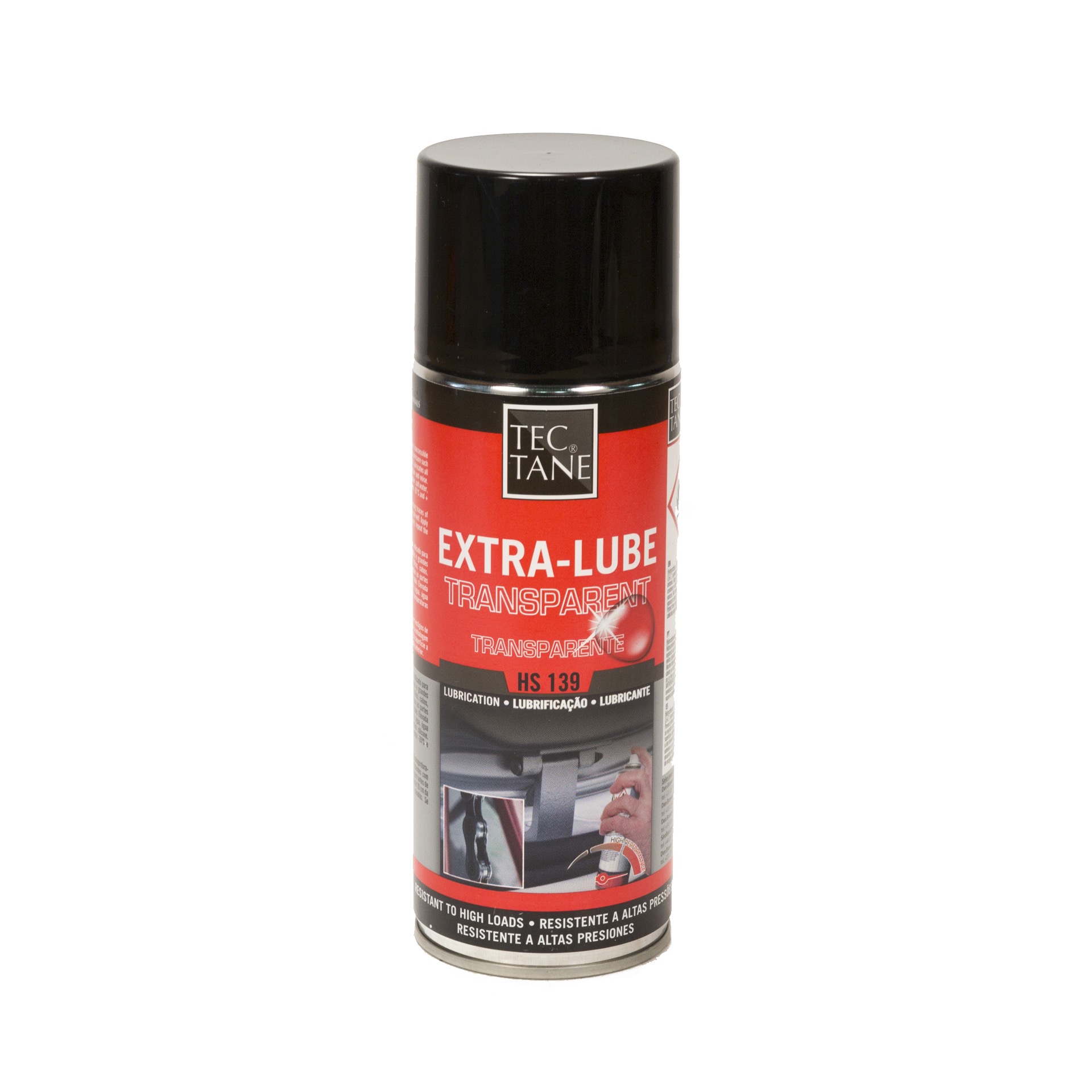 Spray EXTRA lubrificante com rápida capacidade de penetração. Especialmente indicado para uma lubrificação duradoura em situações sujeitas a cargas elevadas e grandes pressões tais como rolamentos, correntes de transportadores, trilhos, cabos, superfícies deslizantes, engrenagens, etc. Lubrifica eficazmente todas as partes expostas a alta pressão, impacto e vibração, reduzindo o atrito e o ruído. Elevada aderência às superfícies. Protege contra a corrosão. Resistente à água, água salgada, bases e ácidos diluídos. Não contém silicone. Resistente a temperaturas compreendidas entre -35ºC e +180ºC.